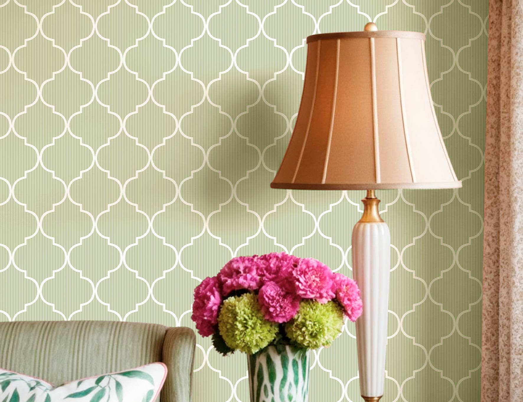 Please: note that online images may vary from the actual photos of the wallpaper. The image of the room is only an example of the wallpaper used.